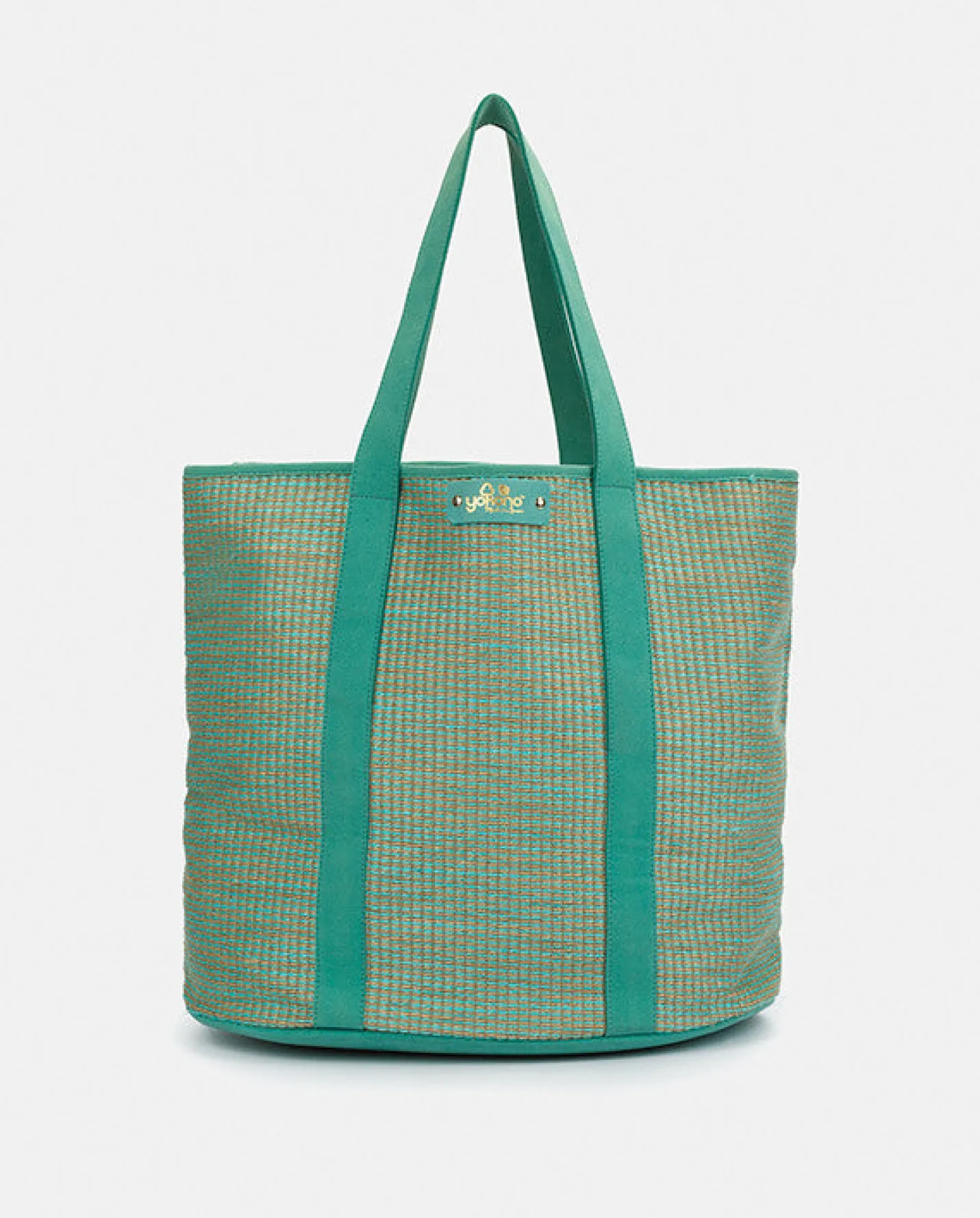 Bolso Guirao 001 en azul. Material rafia y un pequeño estuche a juego, ideal para guardar accesorios. Cuenta con dos asas y el tamaño perfecto para incluirlo en todos tus planes de verano.