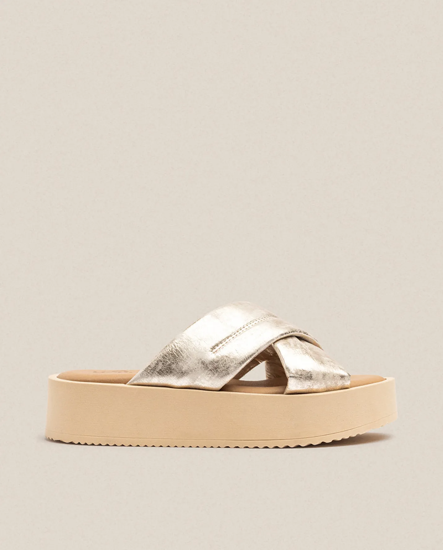 The CARMEN 004 platform sandal, with two crossed straps at the instep, is an elegant and comfortable choice. With a 4 cm platform, it offers stability and style for any occasion. Designed to enhance your daily look, this sandal is the best option for this season. Handcrafted in Spain, it uses environmentally friendly vegetable dyes.