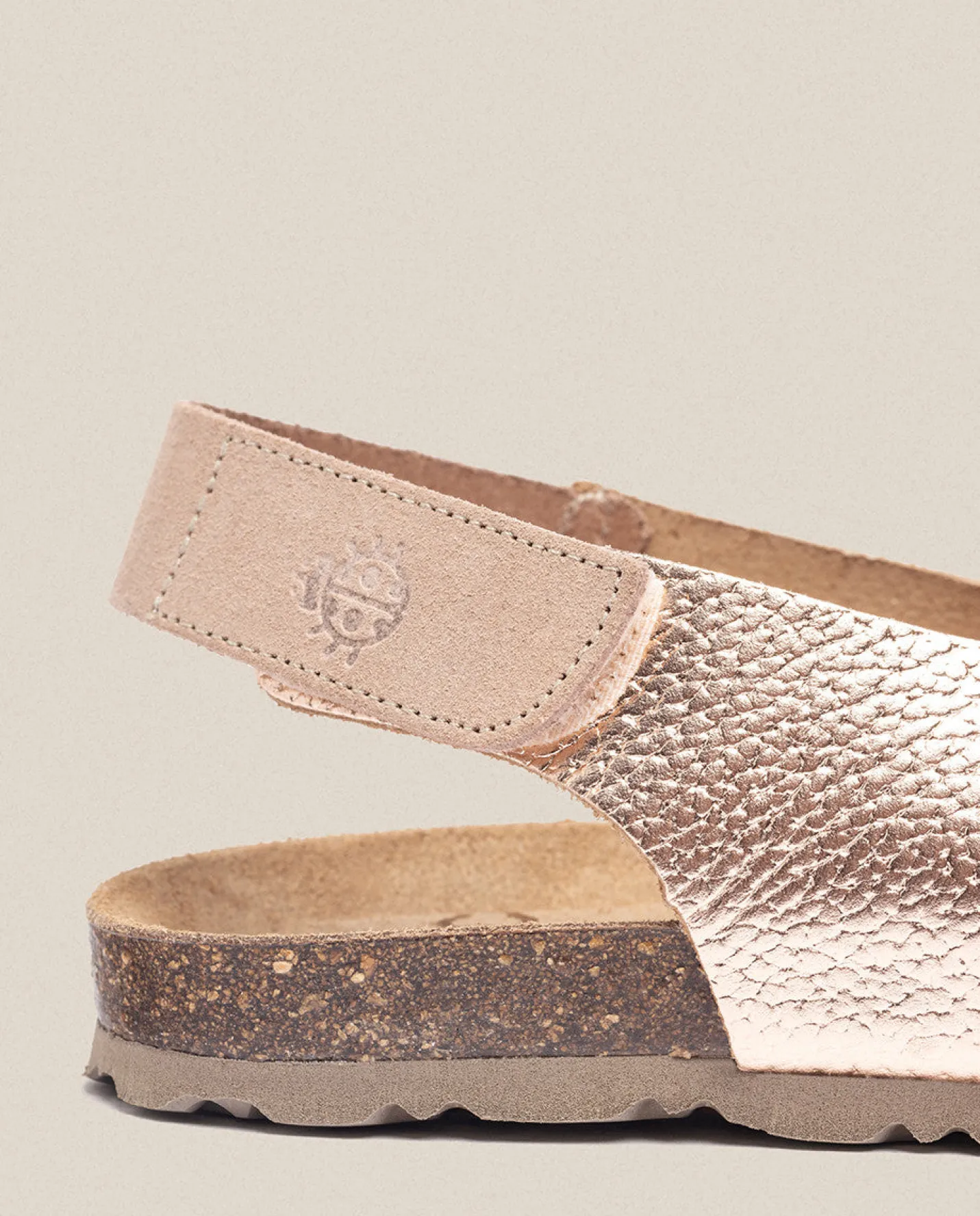 The flat sandal VILLA 175 in pink, a sandal designed for everyday wear. It has a comfortable velcro closure that facilitates the fit and a simple and elegant design. It has a 20 mm sole and a non-slip insole that guarantees the grip of the foot. It is handcrafted in Spain, leather material and use of environmentally friendly vegetable dyes.