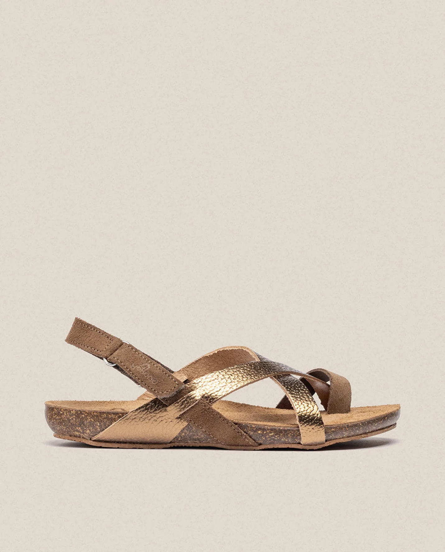 Flat brown sandal with a height of 2 centimeters. It has a simple velcro closure and straps made of cowhide leather that crisscross on the instep. Comfort without sacrificing style, which is why it is our iconic model. It is handcrafted in Spain, leather material and use of environmentally friendly vegetable dyes.