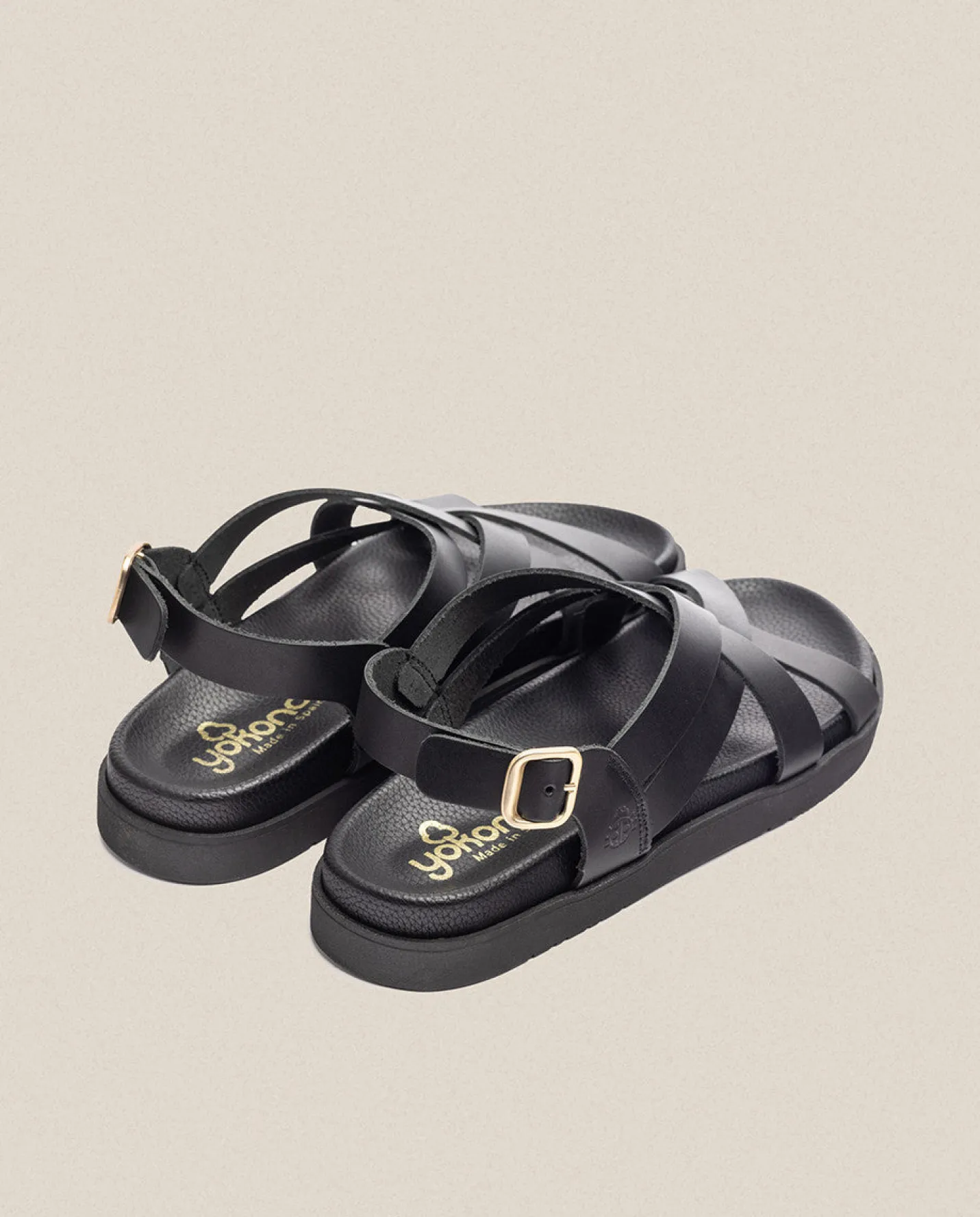 The flat sandal MORENA 005 in black, designed for those who enjoy comfort and want to add a touch to their outfits. Adjustable buckle to fit your feet. It features a 2 cm sole and a non-slip insole that ensures foot grip. Handcrafted in Spain using leather and environmentally friendly vegetable dyes.
