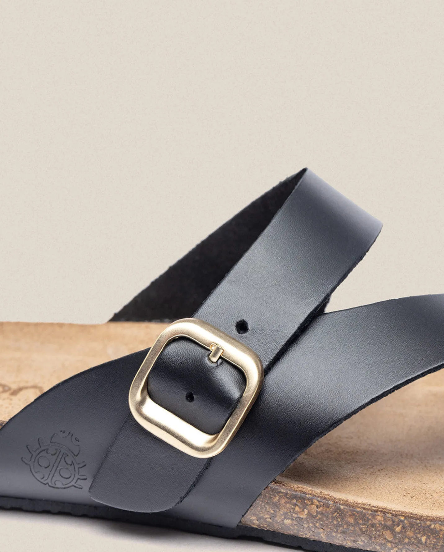 Flat sandal with a height of 2 centimeters, black color. It features two cowhide straps: one goes from the toes to the instep, and the other crosses the foot horizontally. It features a metal buckle for a perfect fit. It also has a padded insole. A comfortable sandal you can wear at all your summer events. Made in Spain.