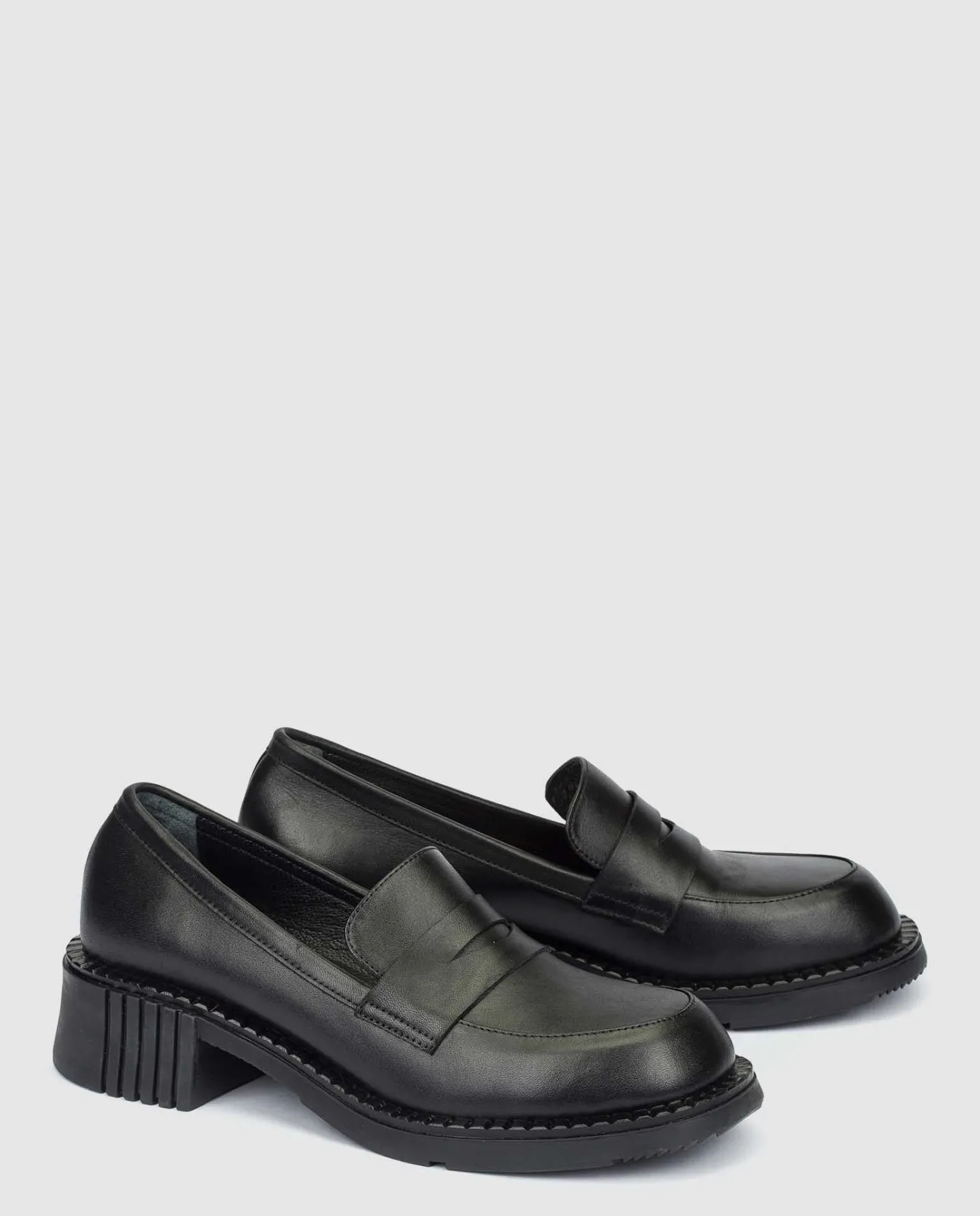 Heeled bovine black leather shoe with a height of 4 centimeters. It is characterised by its original sole with 5 vertical lines on both sides. It has a simple and combinable design ideal for day to day. What are you waiting to wear this model in all your plans?