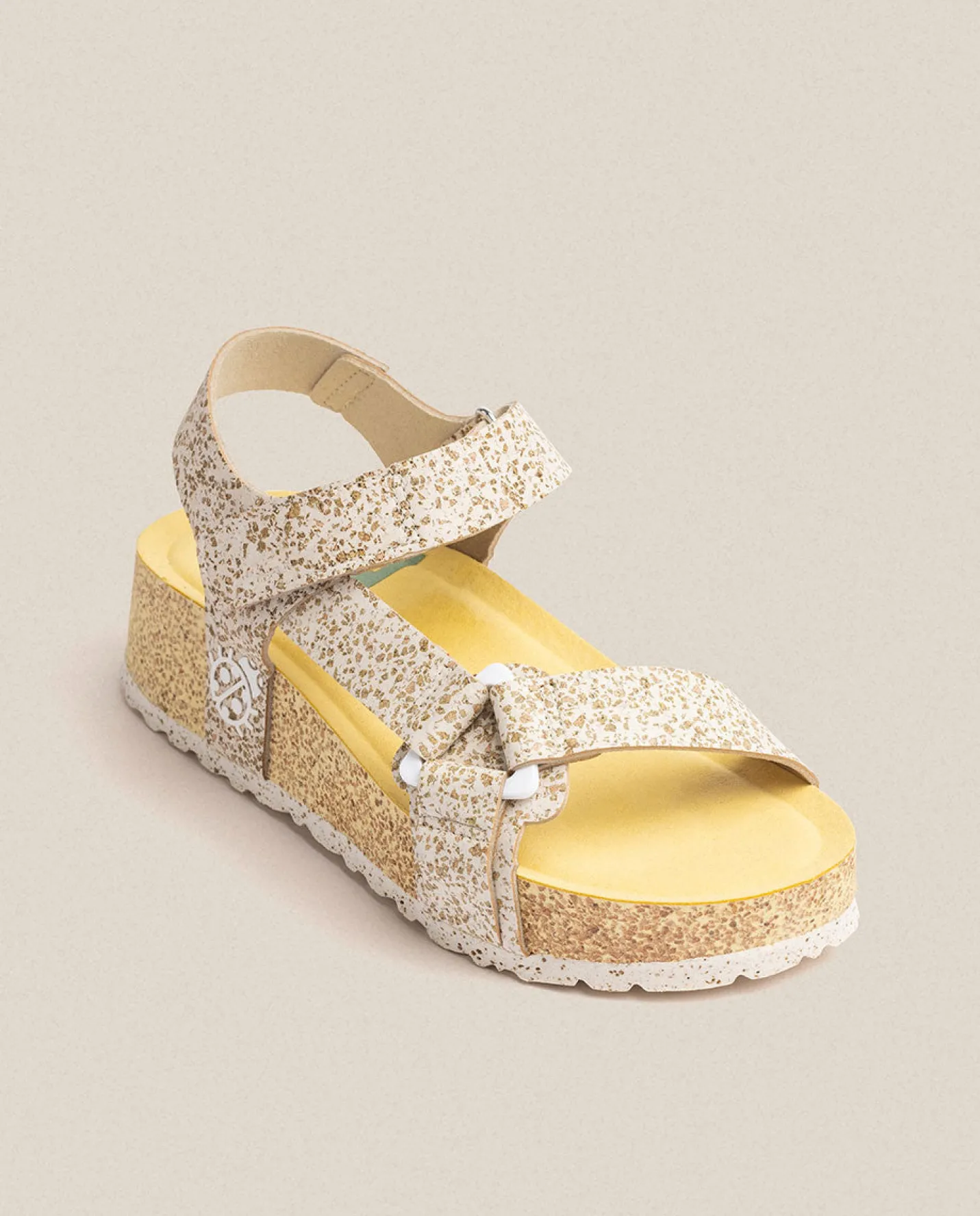 The WEST 007 platform sandal, where creativity meets sustainability. Revolutionary and unique, it is part of our exclusive ReNewed collection. Made with high-quality recycled cork, a completely vegan and innovative material that adds a distinctive touch to your style and ensures environmentally friendly fashion. Equipped with an adjustable velcro closure and a 4cm platform, it guarantees a personalized fit and exceptional comfort throughout the day. Handcrafted in Spain.