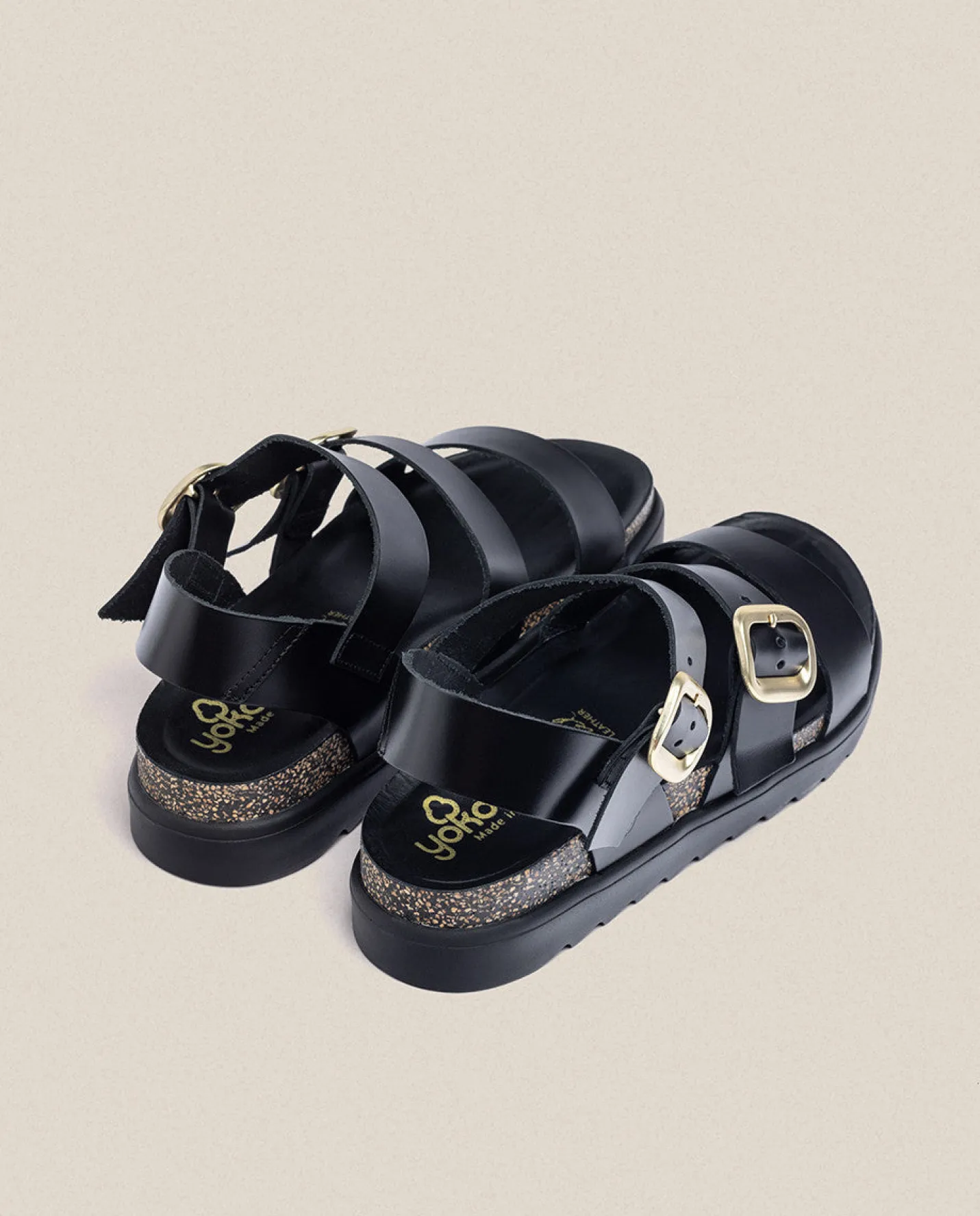 La sandalia de plataforma TUNEZ 127 en negro: cómoda, sencilla y elegante. Diseñada para todas aquellas que buscan seguir un estilo minimalista de la mano de Yokono. Cierre de hebilla, plataforma de 4 cm y una plantilla antideslizante que garantiza el agarre del pie. Está elaborado de manera artesanal en España, material de piel y uso de tintes vegetales respetuosos con el medio ambiente