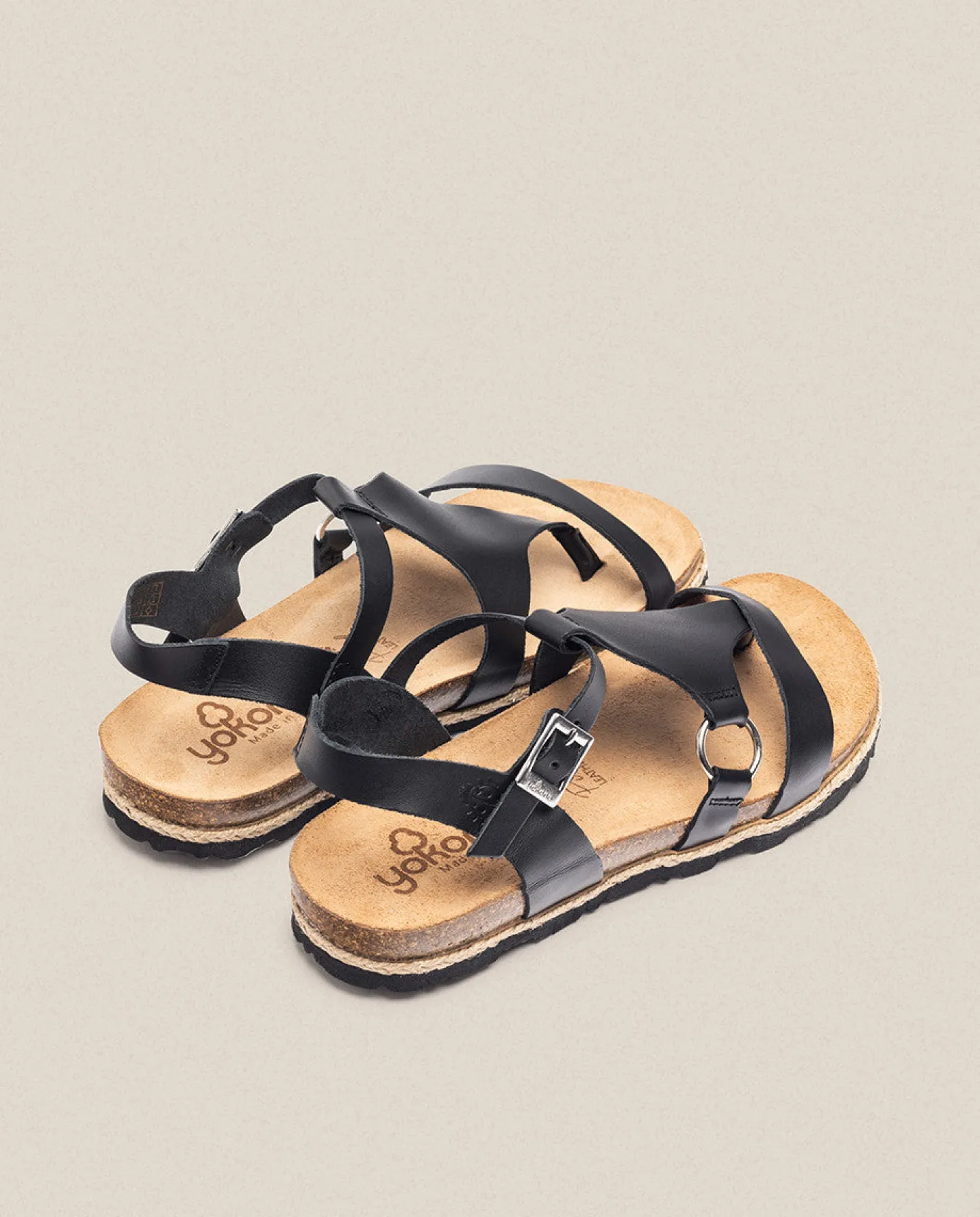 Black platform sandal with a height of 2.16 inches. Design formed by intersecting strips that provide a unique and distinctive touch. Small circumference on the side. The iconic model that cannot be missed if you want comfort in every step. Buckle closure. Jute floor. Cowhide cut. Padded and non-slip insole that adds extra comfort. Made through an artisan manufacturing process that uses vegetable dyes and sustainable packaging to respect the environment. Made in Spain.