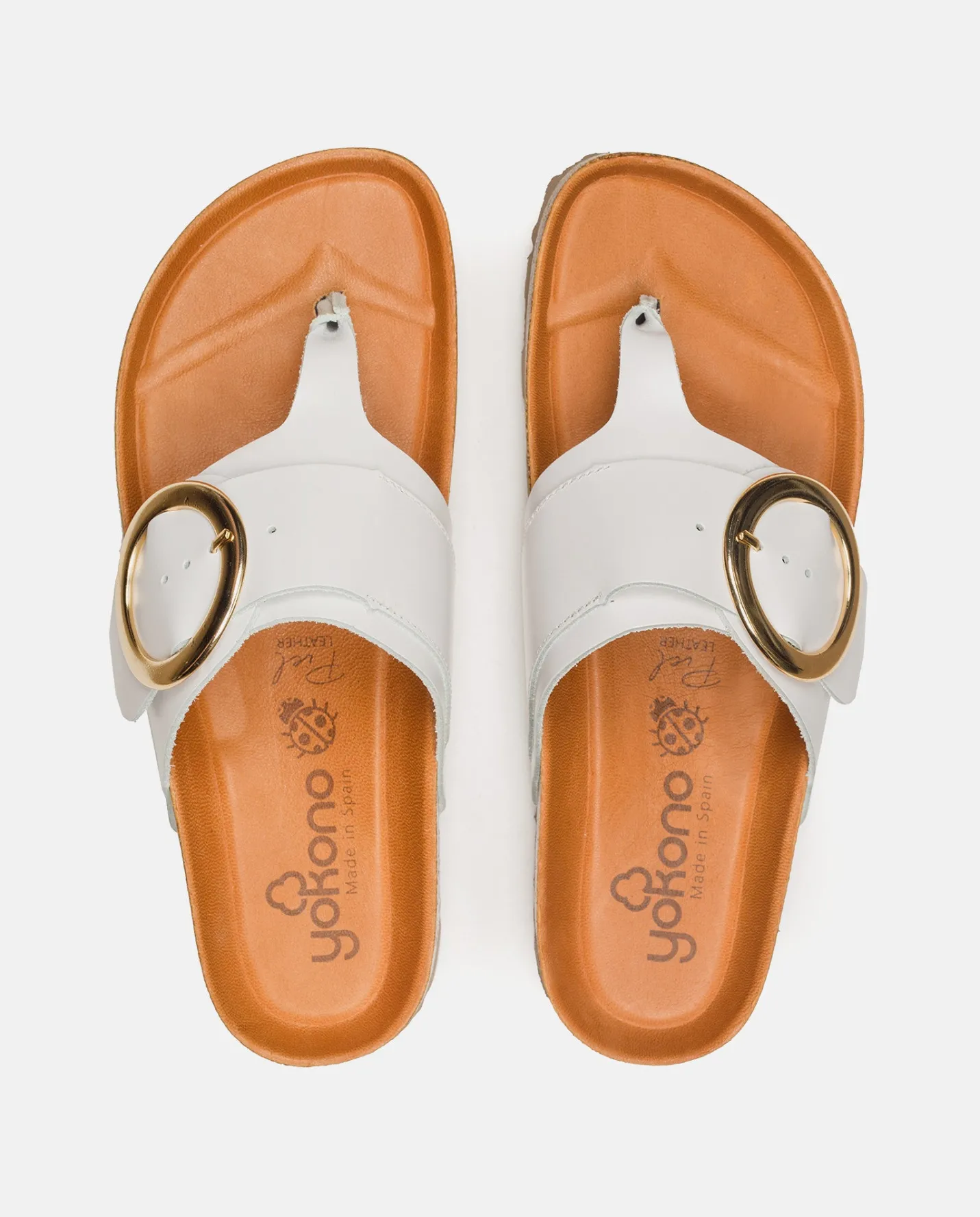 The Granada-704 flat sandal in white smooth leather, with a basic design to combine every summer day. It has a 2.5 cm sole and a non-slip insole that guarantees the foot grip. It is handmade in Spain, leather material and use of vegetable dyes respectful with the environment.
