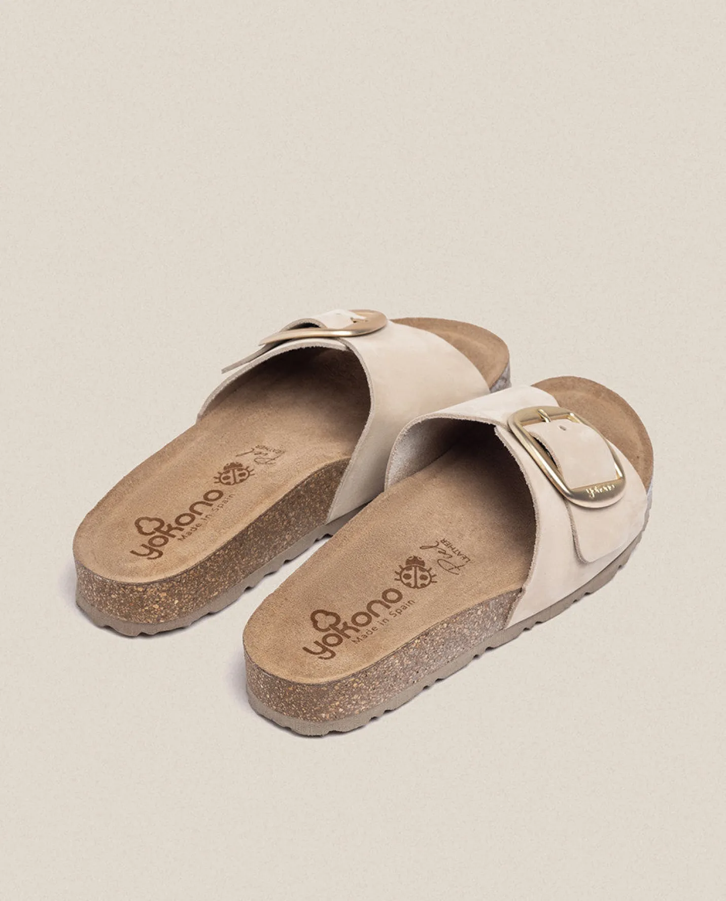 La sandalia plana JERBA 114 en beige, una sandalia plana y sutil, con una hebilla dorada ajustable, promete ser un clásico en la colección. Cuenta con una suela de 3 cm y una plantilla antideslizante que garantiza el agarre del pie. Está elaborada de manera artesanal en España, material de piel y uso de tintes vegetales respetuosos con el medio ambiente.